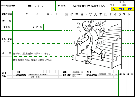 このミーティングでは、「危険予知活動表」を使いながら全員で意見交換をし日頃から、安全感度を高めていくことを身につけていきます。
