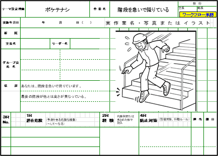 このミーティングでは、「危険予知活動表」を使いながら全員で意見交換をし日頃から、安全感度を高めていくことを身につけていきます。