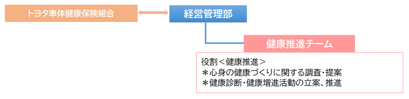 当社が加入しているトヨタ車体健康保険組合とも常に連携をしています。健康ポータルサイト(PepUp)を利用した、健康イベント(ウォーキングラリーやオンラインセミナー)もあり、従業員そして、ご家族も一緒に健康意識を向上させています。また、毎年実施されるトップ訪問では、健康保険組合と会社の健康課題の共有し施策検討を行っています。