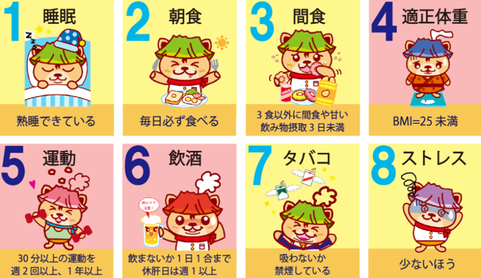 トヨタ車体研究所では、「健康チャレンジ8」活動を実施しています。 これは、一人ひとりが8つの指標の実践数を明確にすることで、より生活習慣の改善に繋げていくものです。